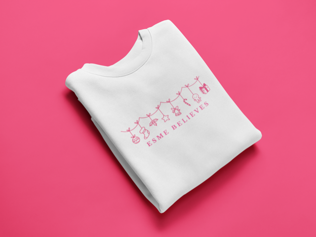 Make your little one’s Christmas extra magical with our adorable design — beautifully printed on a soft, cosy t-shirt or sweater! Featuring your child’s name and festive Christmas bunting hanging above, this cheerful design captures the joy and wonder of the holiday season.